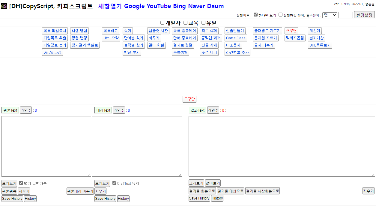 3. 원본/대상Text 영역 --> 실행할 기능에 필요한 내용을 입력한다.